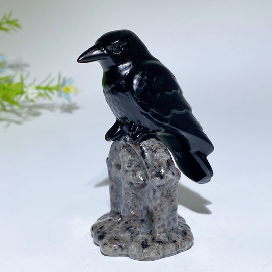 3.1" Crystal Raven on Yooperlite Tombstone Carving Crystal Healing Bulk Wholesale