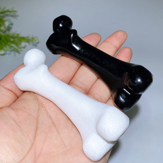 4.0" White Jade BlackObsidian Bones Carving Crystal Healing Bulk Wholesale
