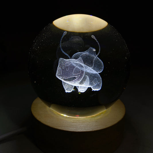 3D Inner Carving Crystal Pokemon Glass Sphere with Colorful Lamp Stand Crystal Healing Bulk Wholesale
