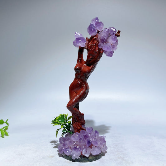 6.1" Amethyst Wooden Tree Elf Carving Crystal Healing Bulk Wholesale