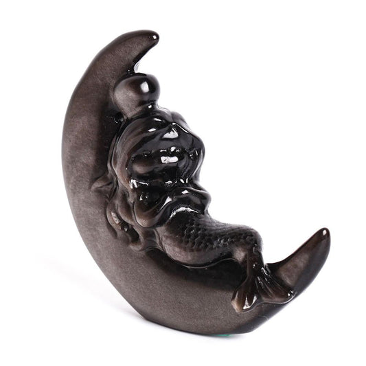 Silver Obsidian Moon with Mermaid Carving Decor Best Crystal Wholesalers