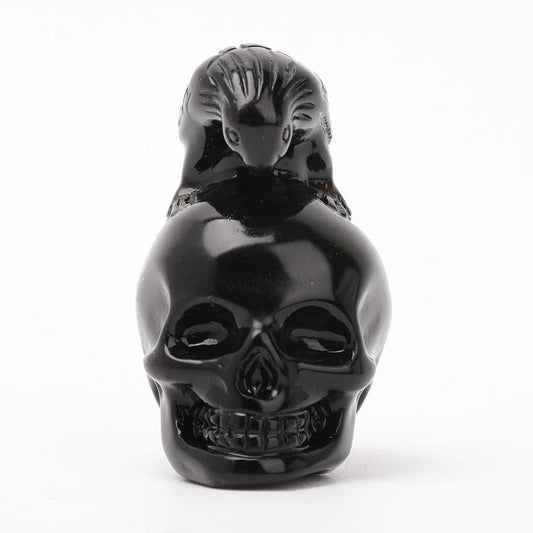 Black Obsidian Skull with Crow - Skull Carving, Obsidian Skull Best Crystal Wholesalers