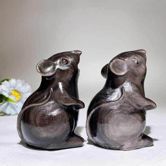 4.0" Silver Obsidian Mouse Carving Crystal Healing Bulk Wholesale