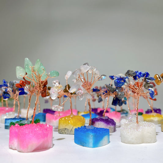 Mixed Crystal Chips Tree with Angel Aura Cluster Base Free Form Bulk Wholesale