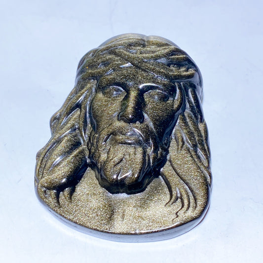 2.2" Silver Obsidian Golden Obsidian Man Face Carvings Bulk Wholesale