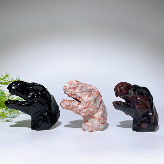 3.2" Black Obsidian Red Line Jasper Garnet T-Rex Dinosaur Head Carvings Bulk Wholesale