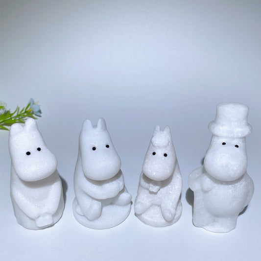 3.1"-3.8" White Jade Hippo Family Carvings Bulk Wholesale