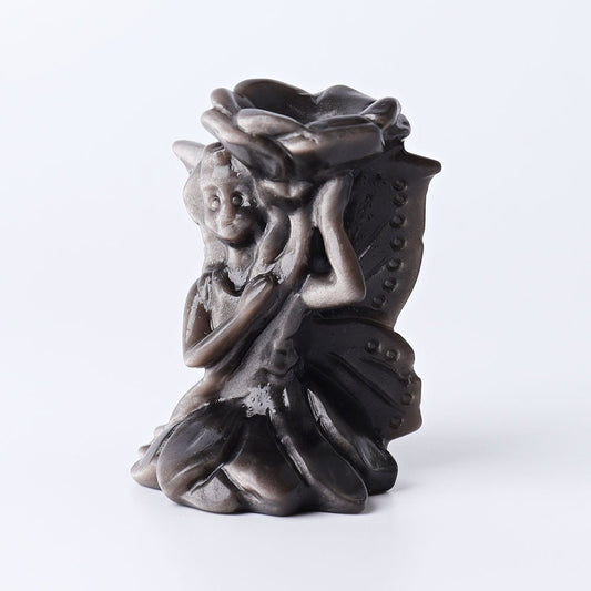 2.3" Silver Obsidian Butterfly Fairy Crystal Carvings Best Crystal Wholesalers