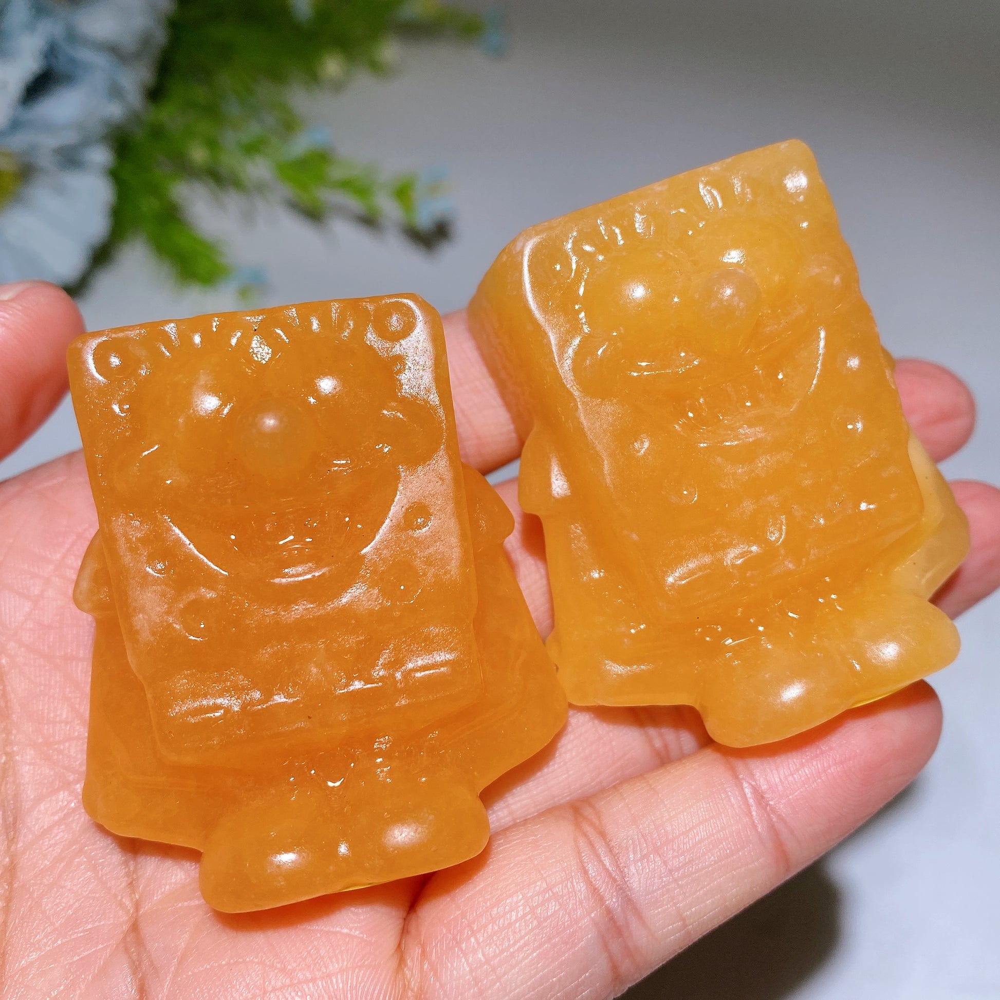 1.9" Orange Calcite SpongeBob Carving Bulk Wholesale