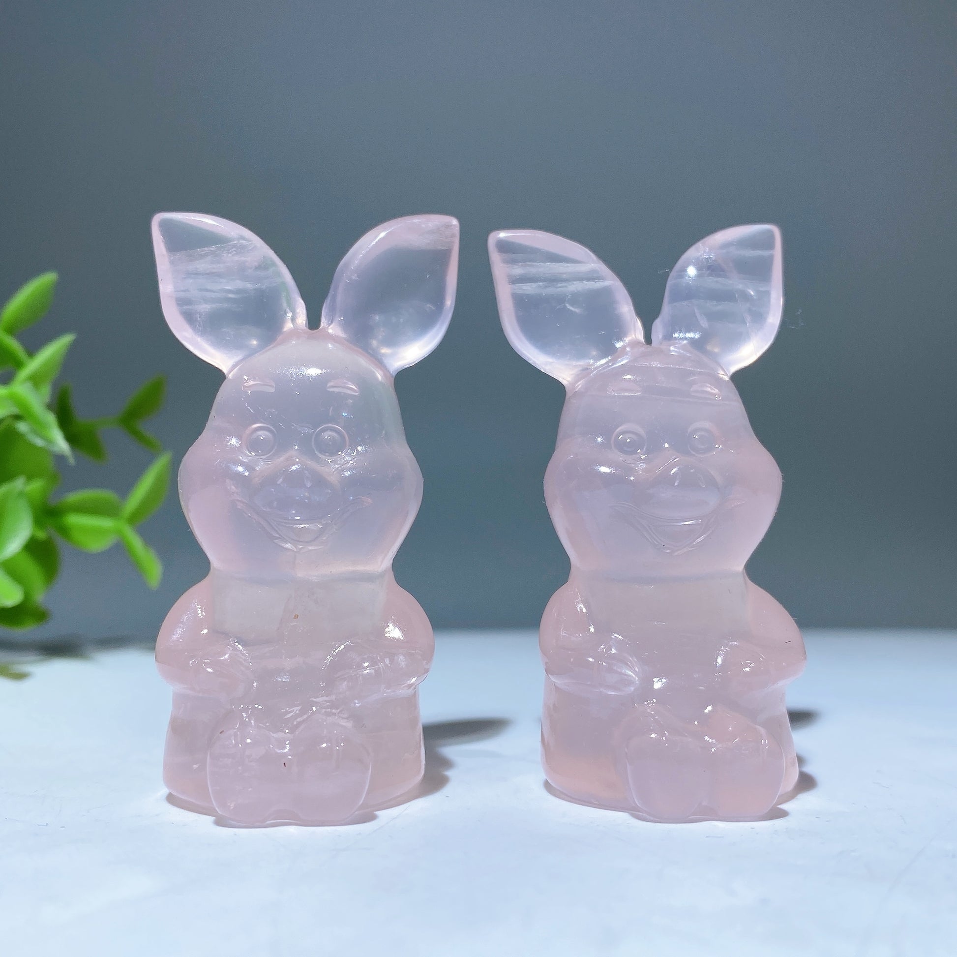 2.2" Rose Quartz Disney Piglet Carving Bulk Wholesale