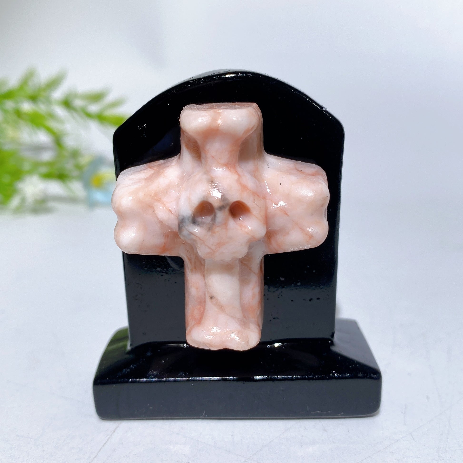 2.3" Black Obsidian Tombstone with Cross Skull Decor Carving Crystal Healing Bulk Wholesale