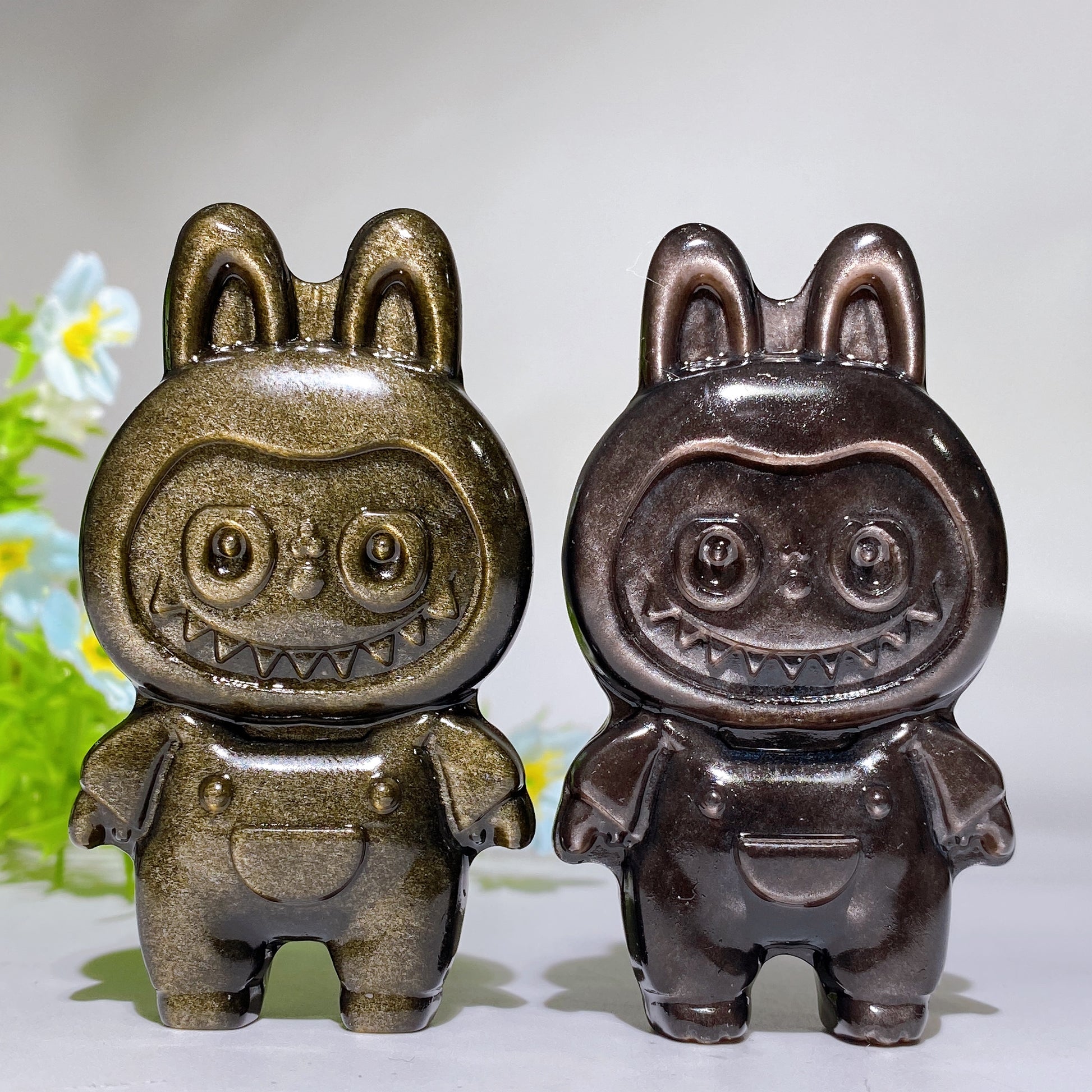 2.9"-3.1" Silver Obsidian Golden Obsidian Labubu Carving Crystal Healing Bulk Wholesale