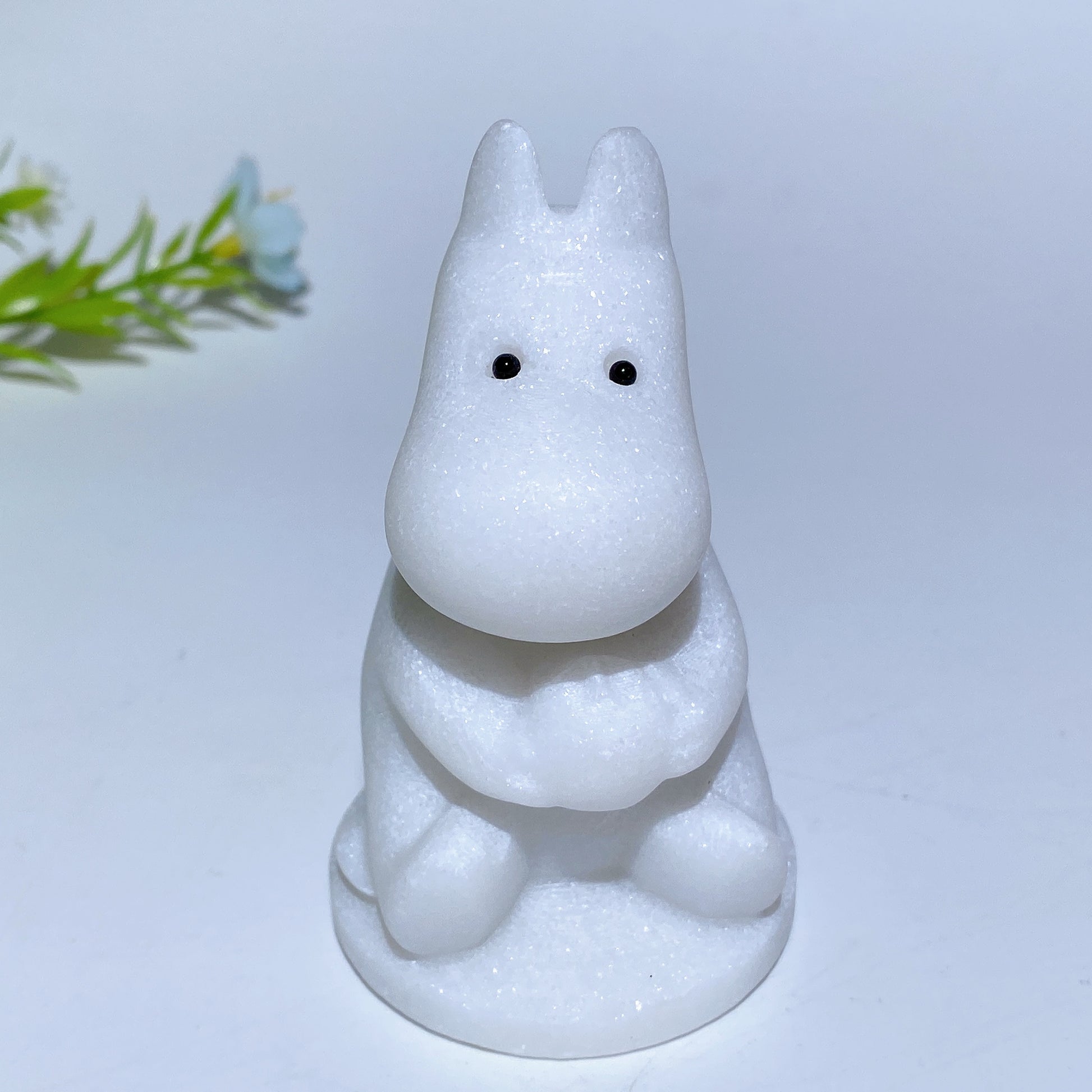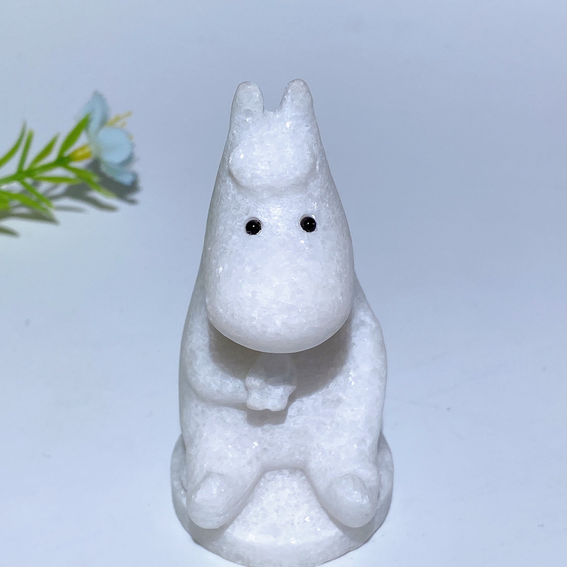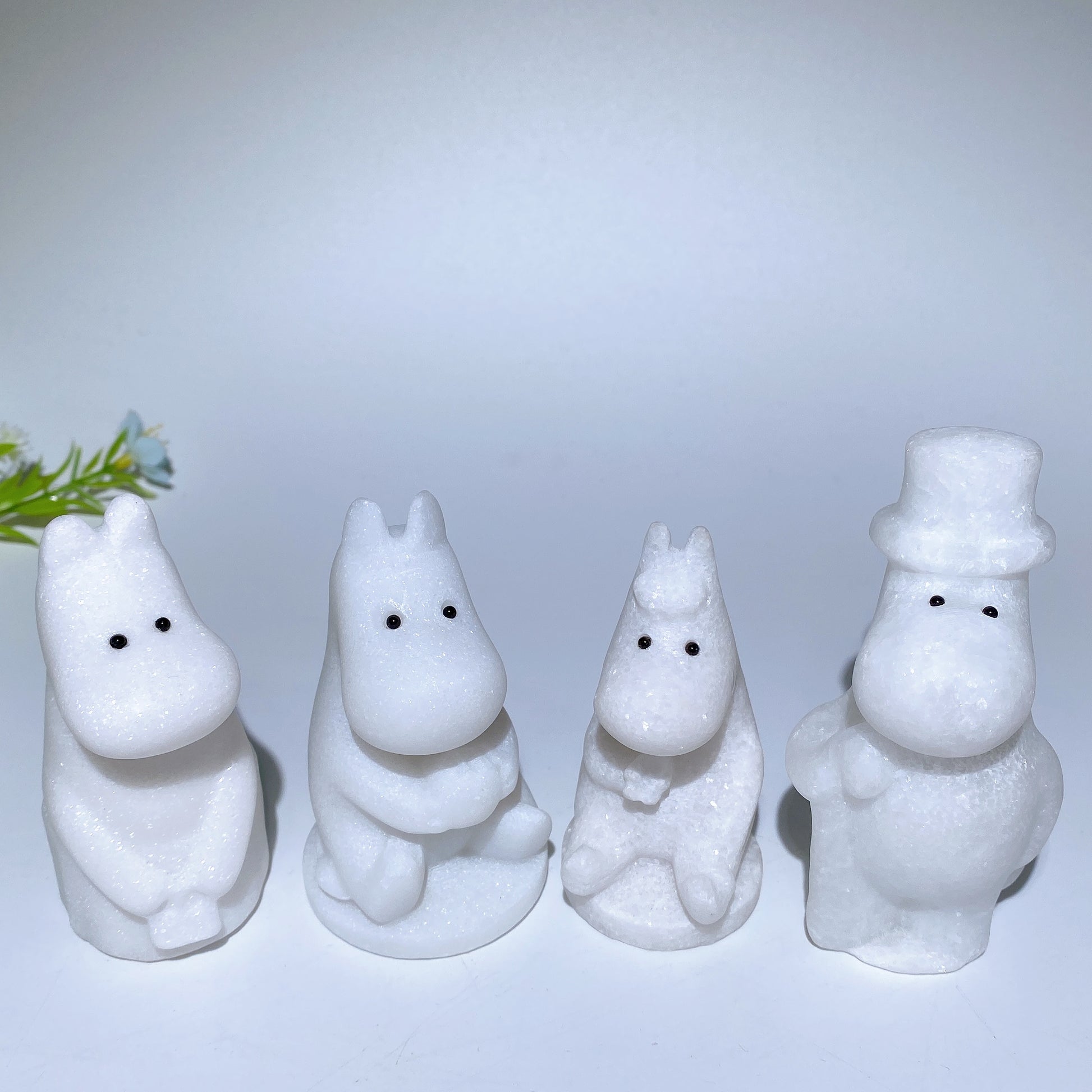 3.1"-3.8" White Jade Hippo Family Carvings Bulk Wholesale