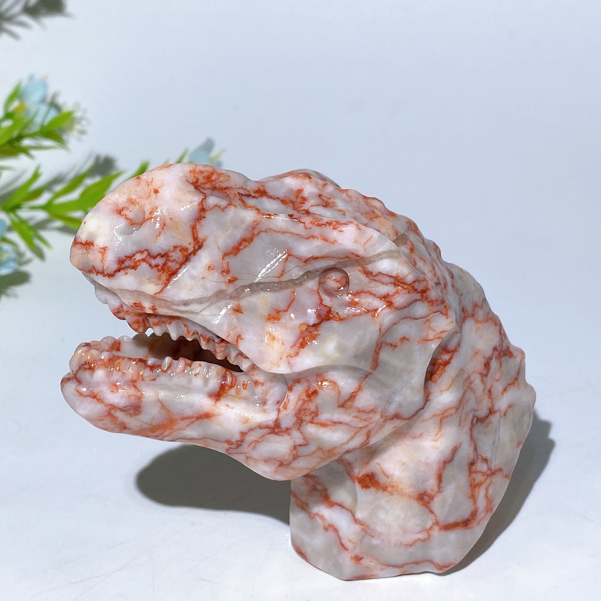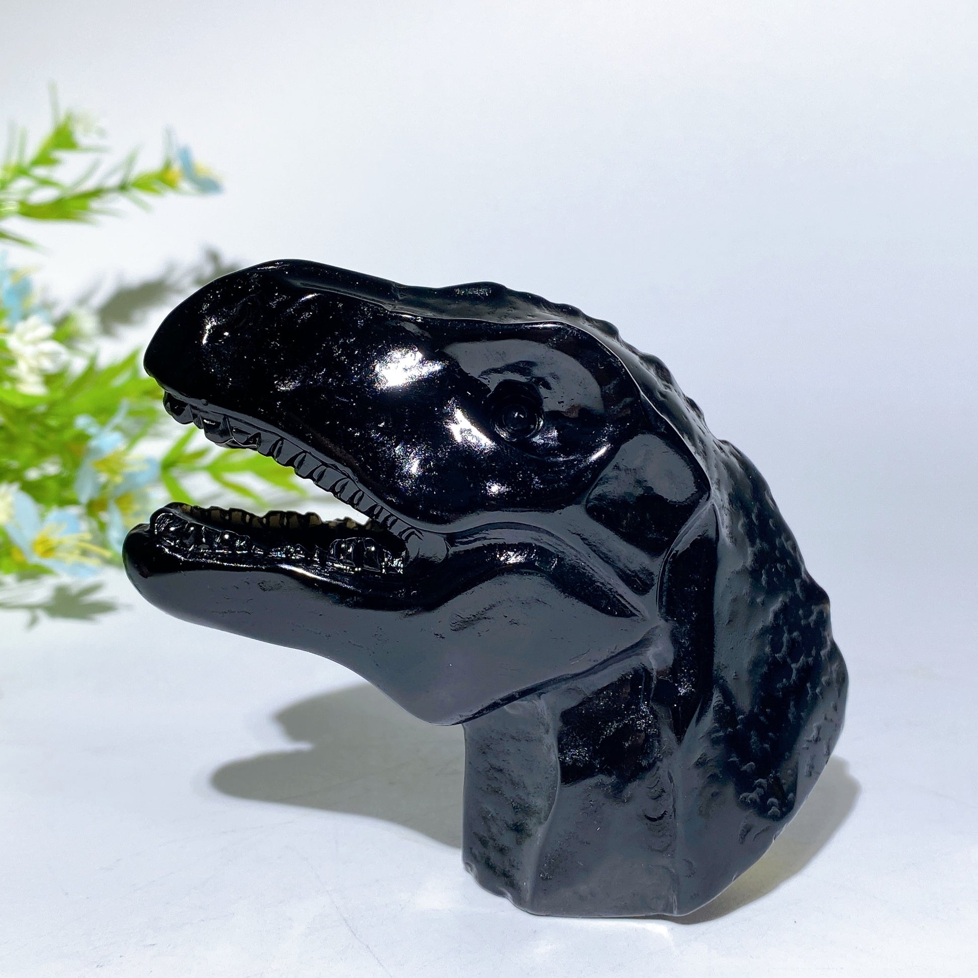 3.2" Black Obsidian Red Line Jasper Garnet T-Rex Dinosaur Head Carvings Bulk Wholesale
