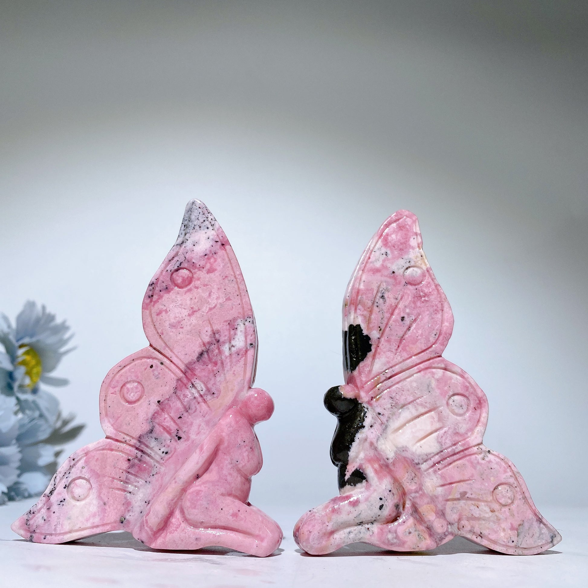 3.8"-4.8" Peru Rhodonite Butterfly Fairy Carvings Bulk Wholesale
