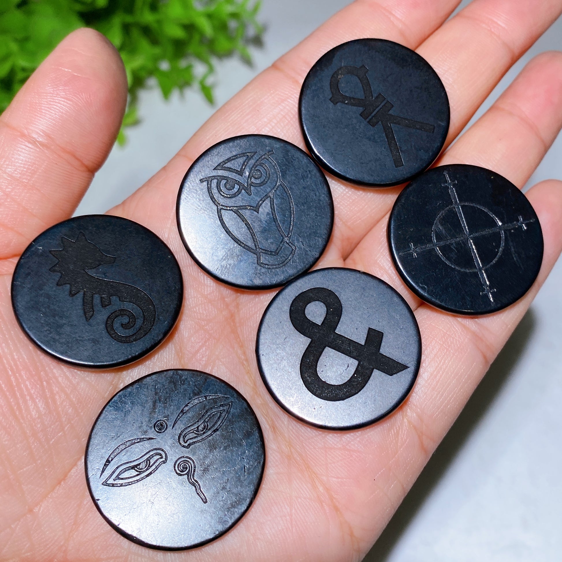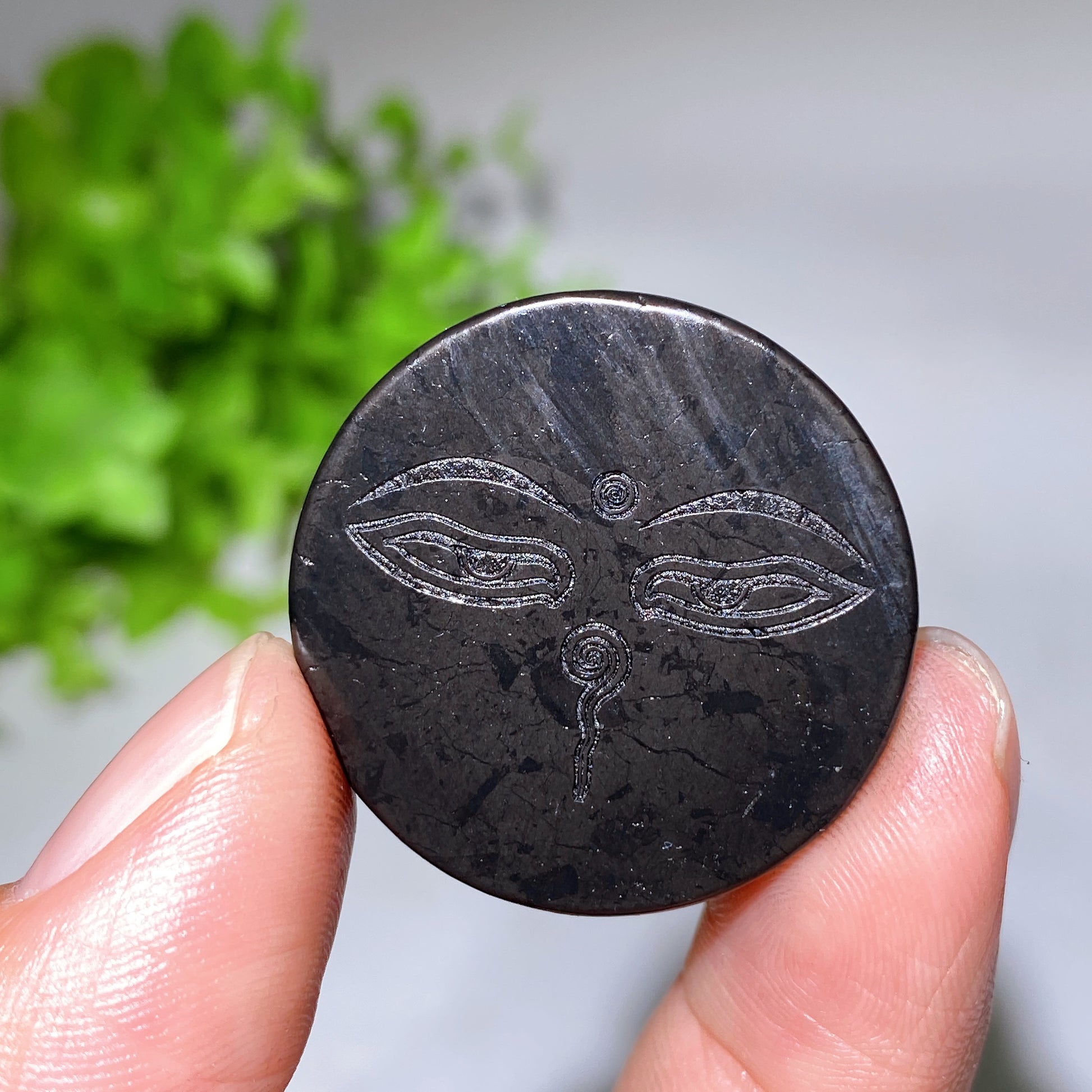 30mm Schungite Round Slab with Double Sides Tape Crystal Healing Bulk Wholesale
