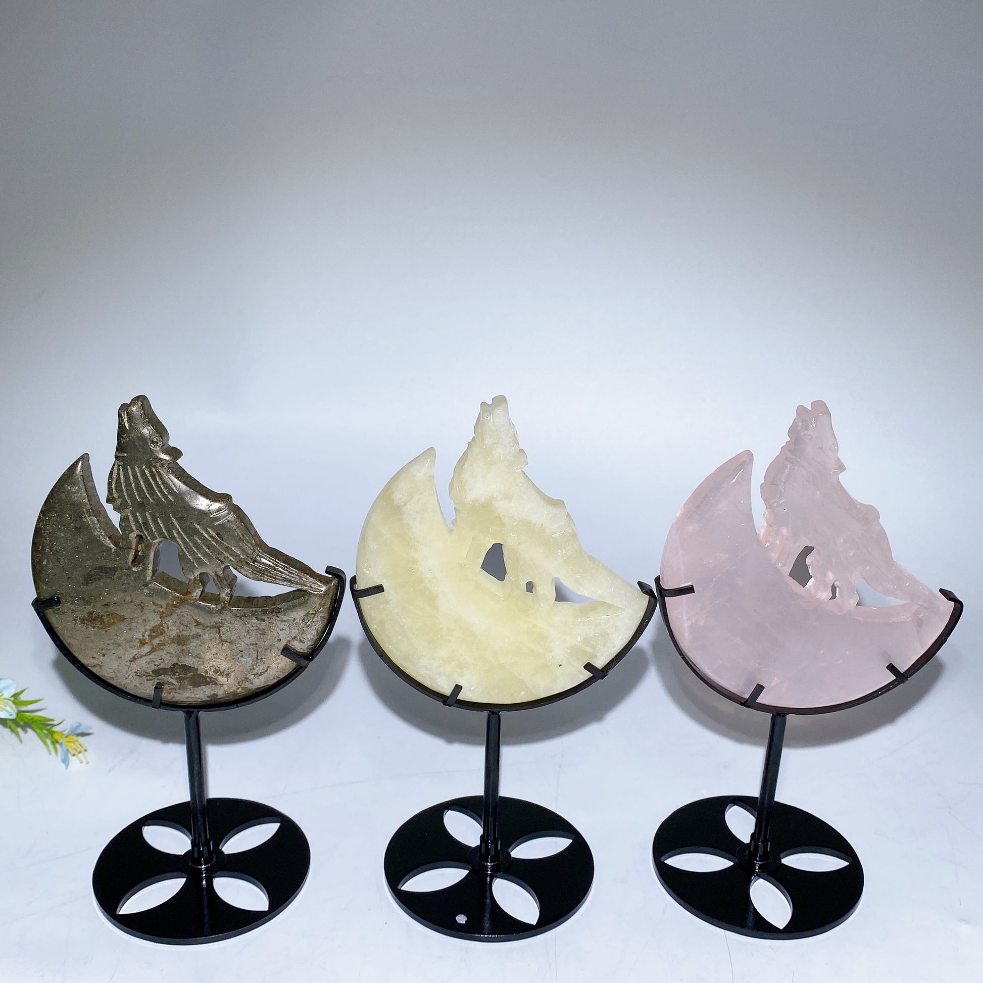 4.0"-4.4" Crystal Wolf On Moon Carving with Stand Bulk Wholesale