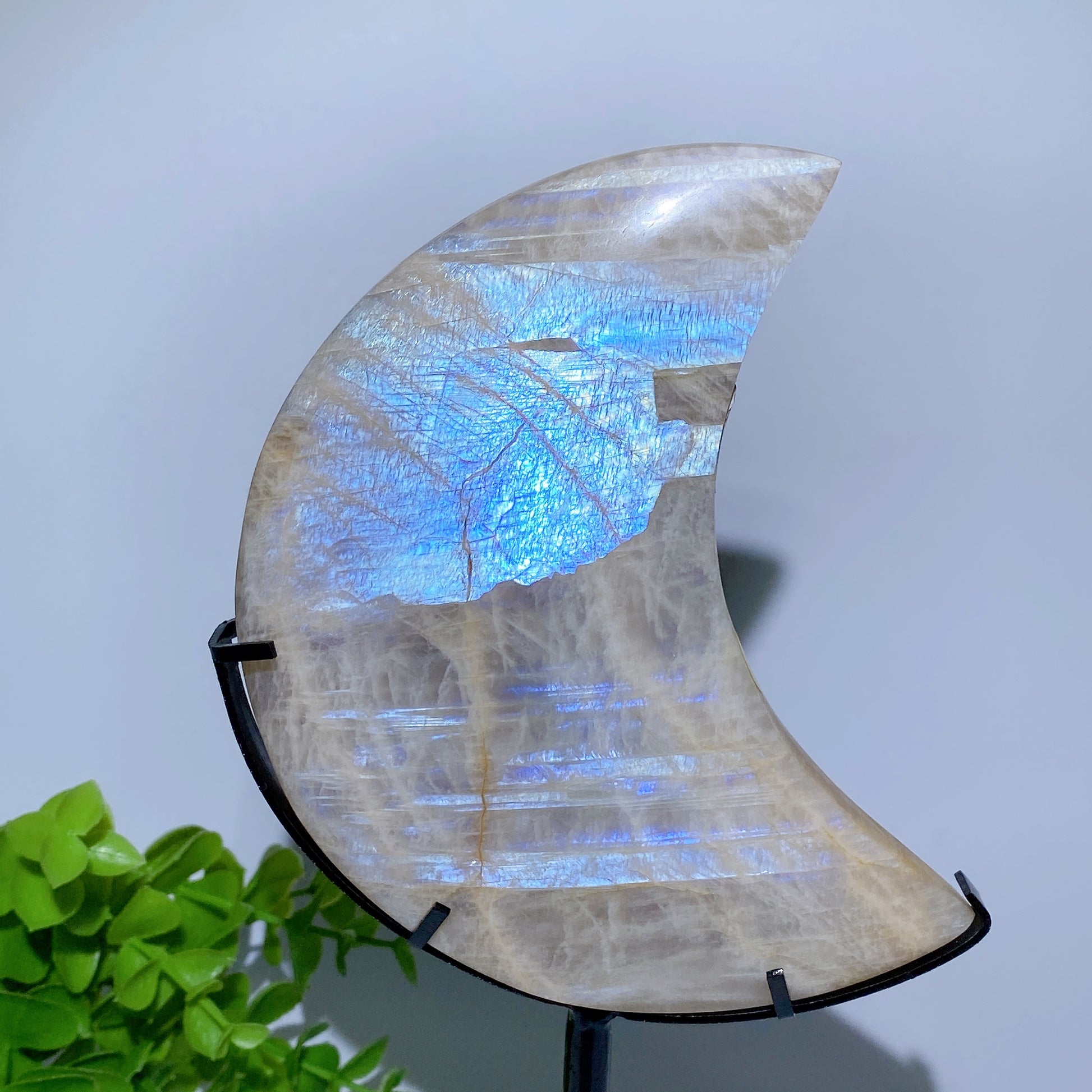 4.0"-5.5" Blue Flash Moon Carvings with Stand Bulk Wholesale