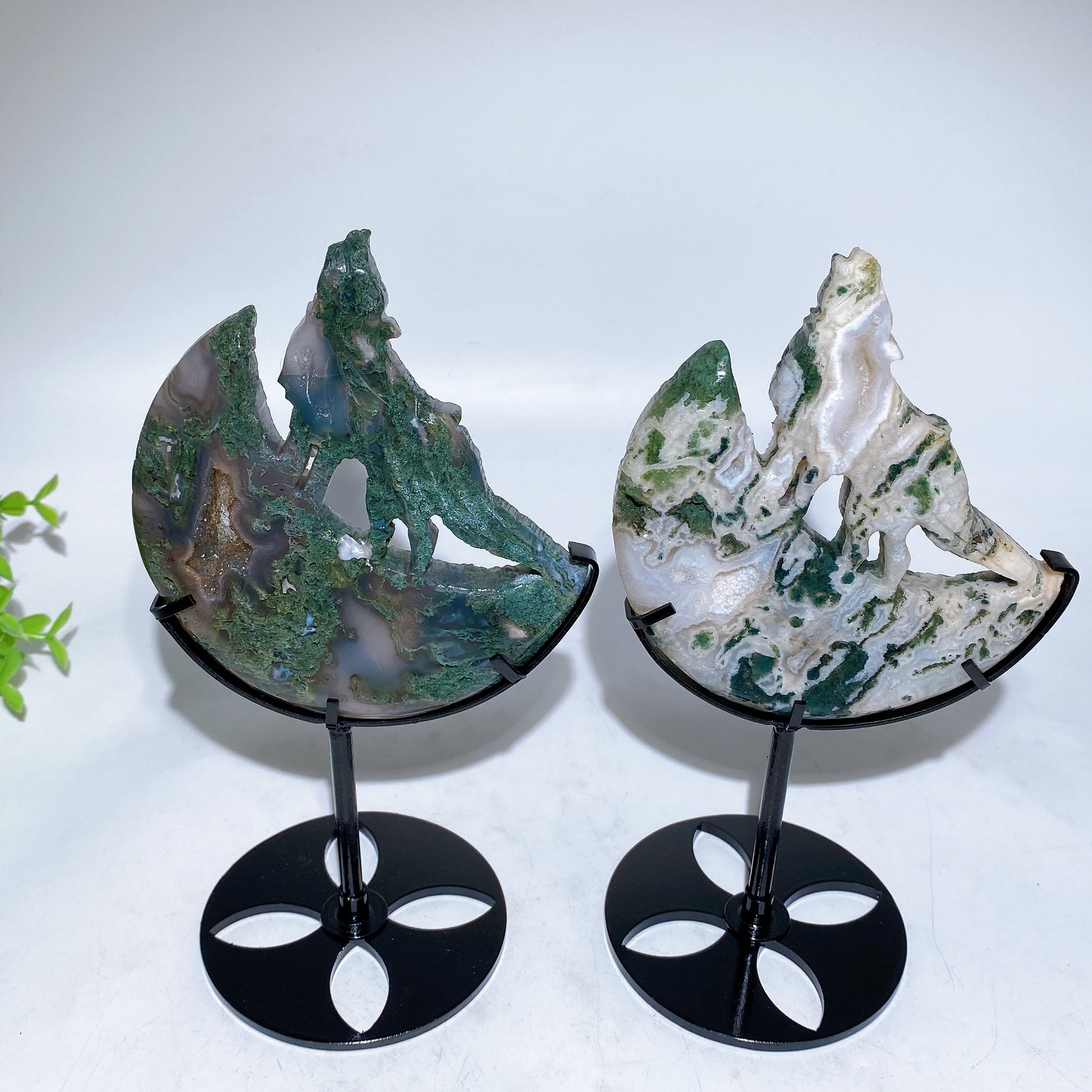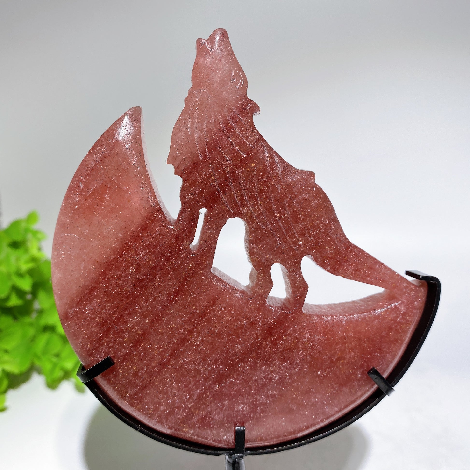 Crystal Wolf on Moon Carving with Stand Free Form Crystal Healing Bulk Wholesale
