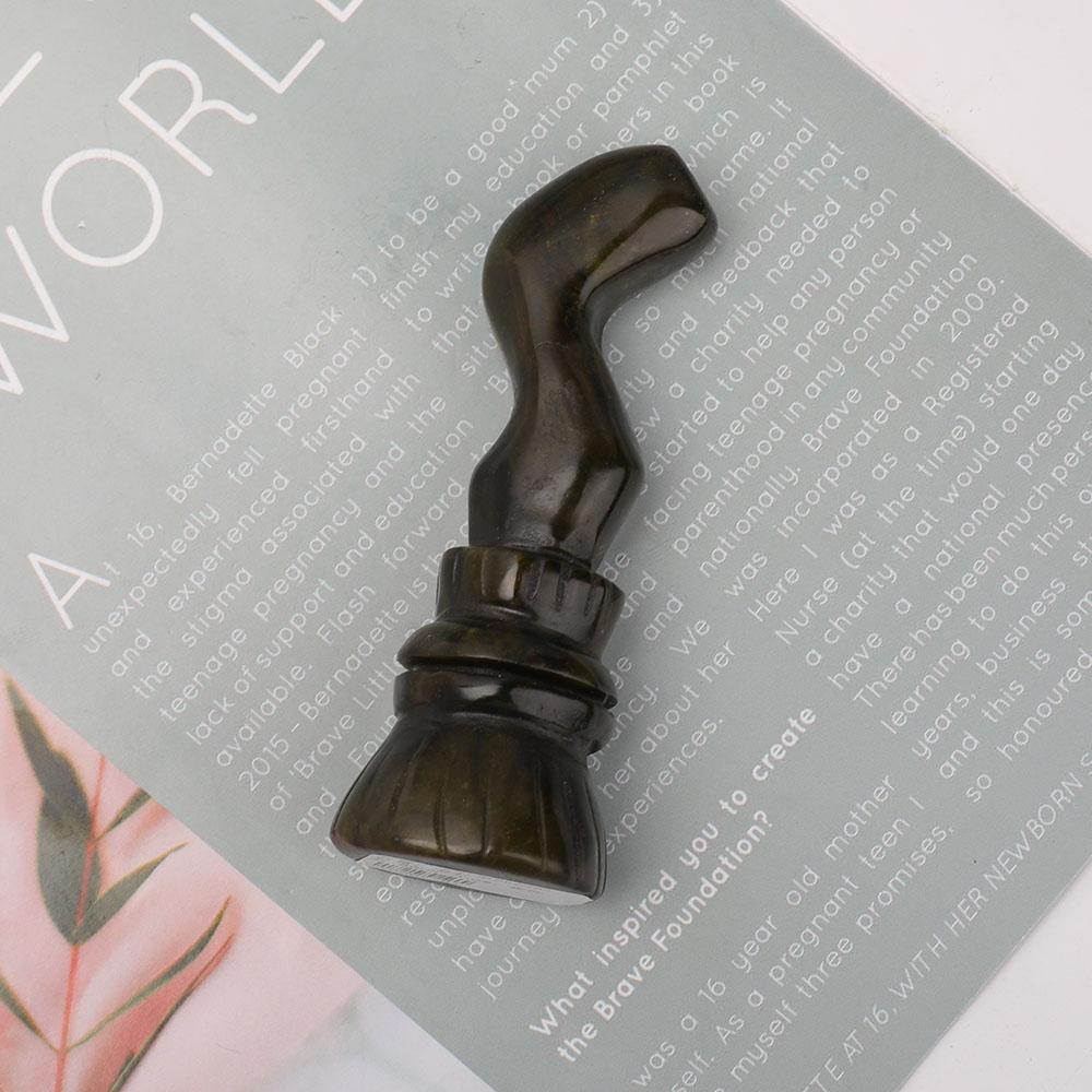 Golden Obsidian Wizard's Magic Broom Carvings