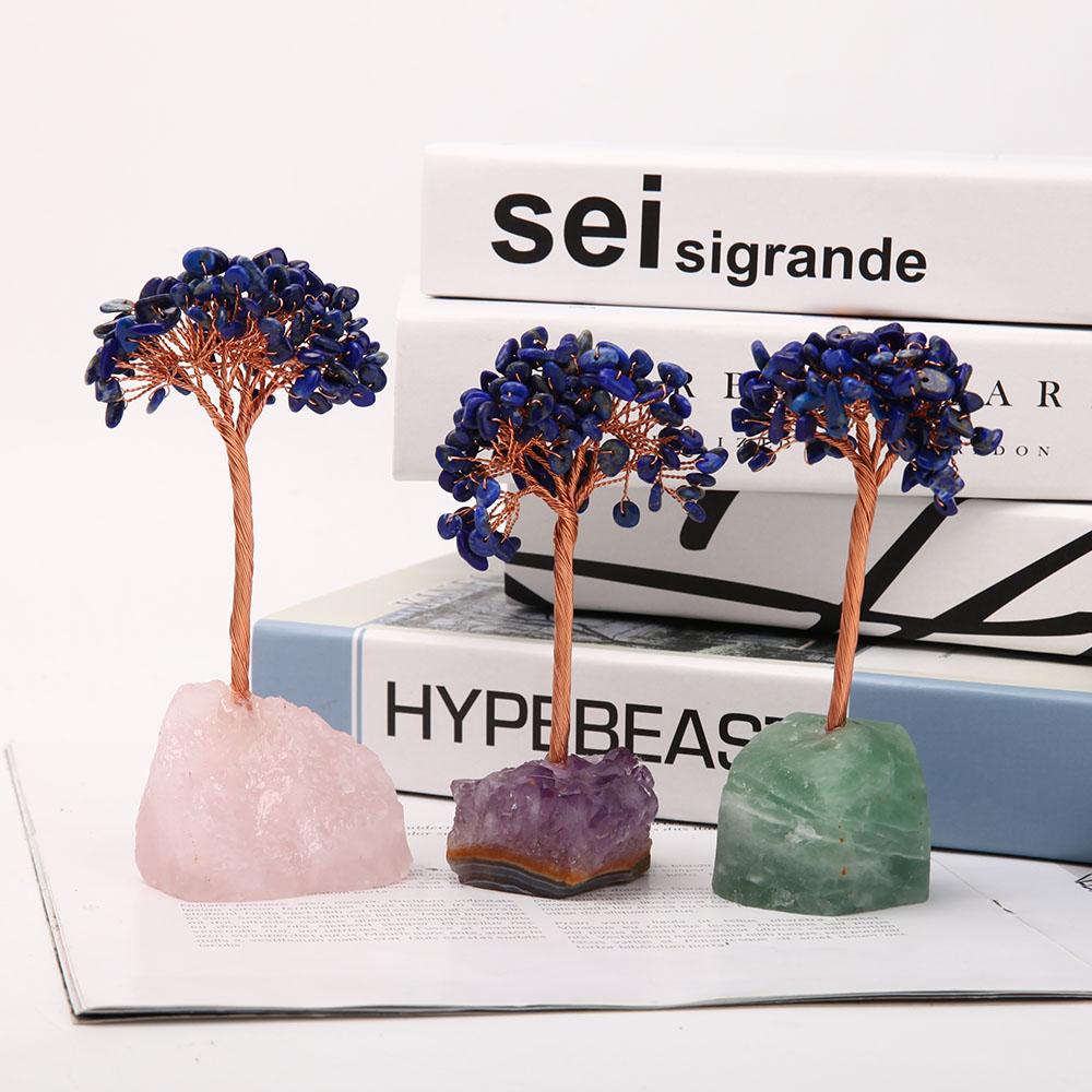 Crystal trees made by two parts: natural raw quartz bottom and natural lapis chips tree.